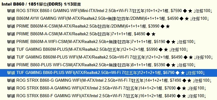 B860主機板㊣藤小二說,B860主機板於2025/1/14上市開賣,藤哥已選好主機板了!(2025/1/14)◢藤小二2025年電腦組裝手札◣